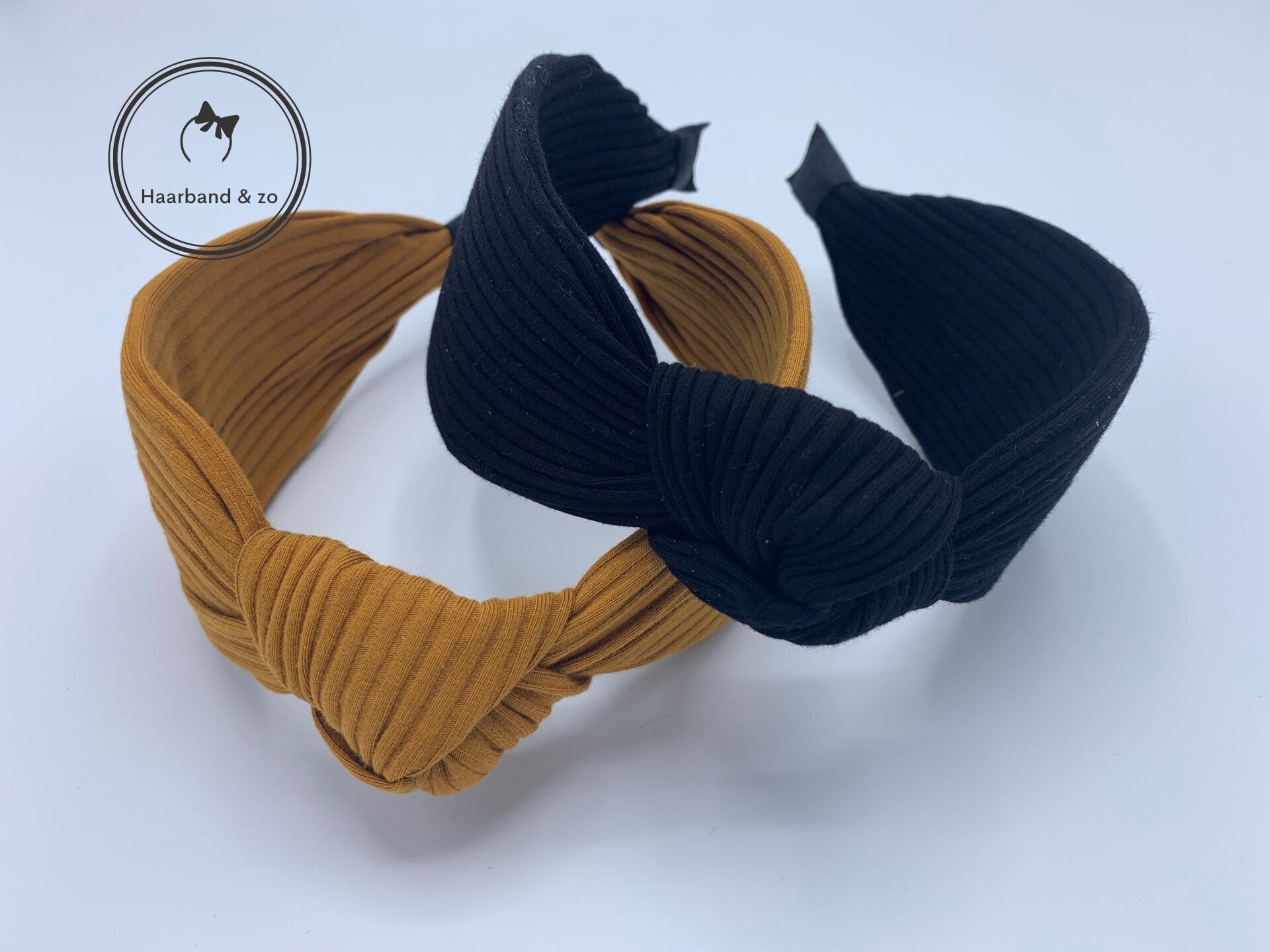 - Deze haarband heeft de vorm van een haarband met twist, maar heeft een knoop middenop.