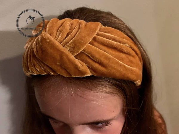 - De haarband is erg breed, ideaal als je niet van een elastische haarband houdt, maar wel een flinke knoop van stof wilt. Ter hoogte van de knoop is de haarband ruim 6 cm breed. De haarband is aan de binnenzijde ook met fluweel bedekt, dus heerlijk zacht bij het dragen.