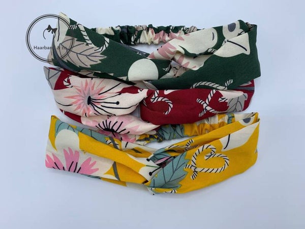 - Deze haarband is verkrijgbaar in 4 variaties, hoofdkleur wijnrood, geel, zwart en groen.