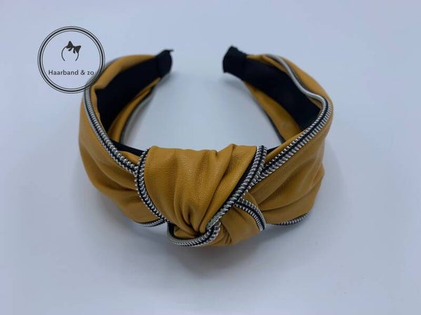 - Brede booghaarband van PU-leder. Afgezet met een ritseffect, in de kleur okergeel.