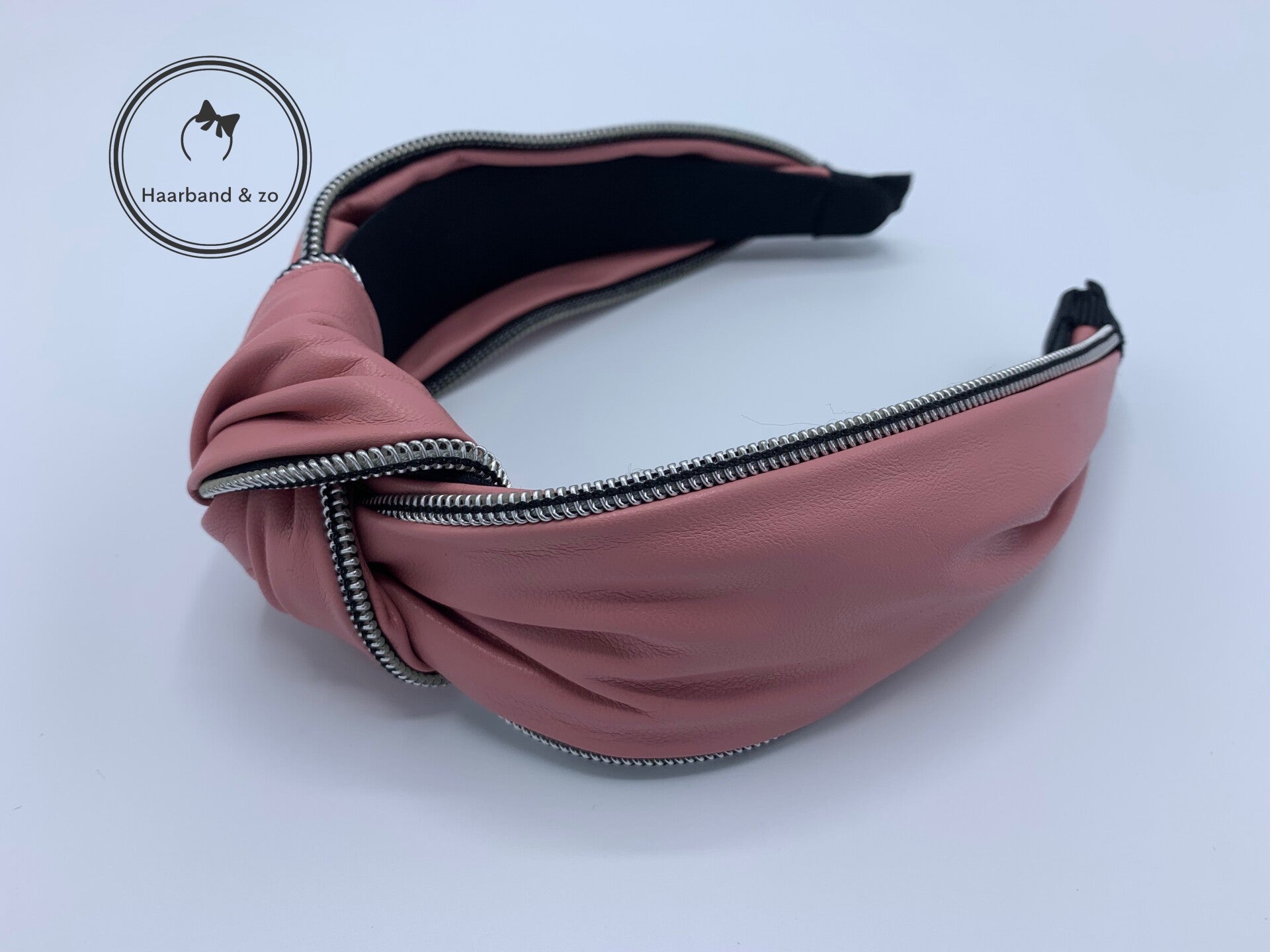 - Brede booghaarband van PU-leder. Afgezet met een ritseffect, in de kleur roze.