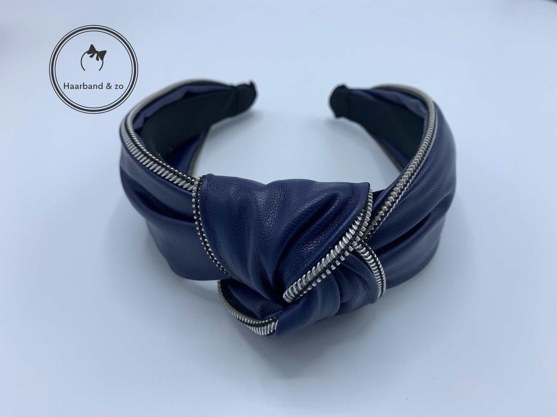 - Brede booghaarband van PU-leder. Afgezet met een ritseffect, in de kleur blauw.