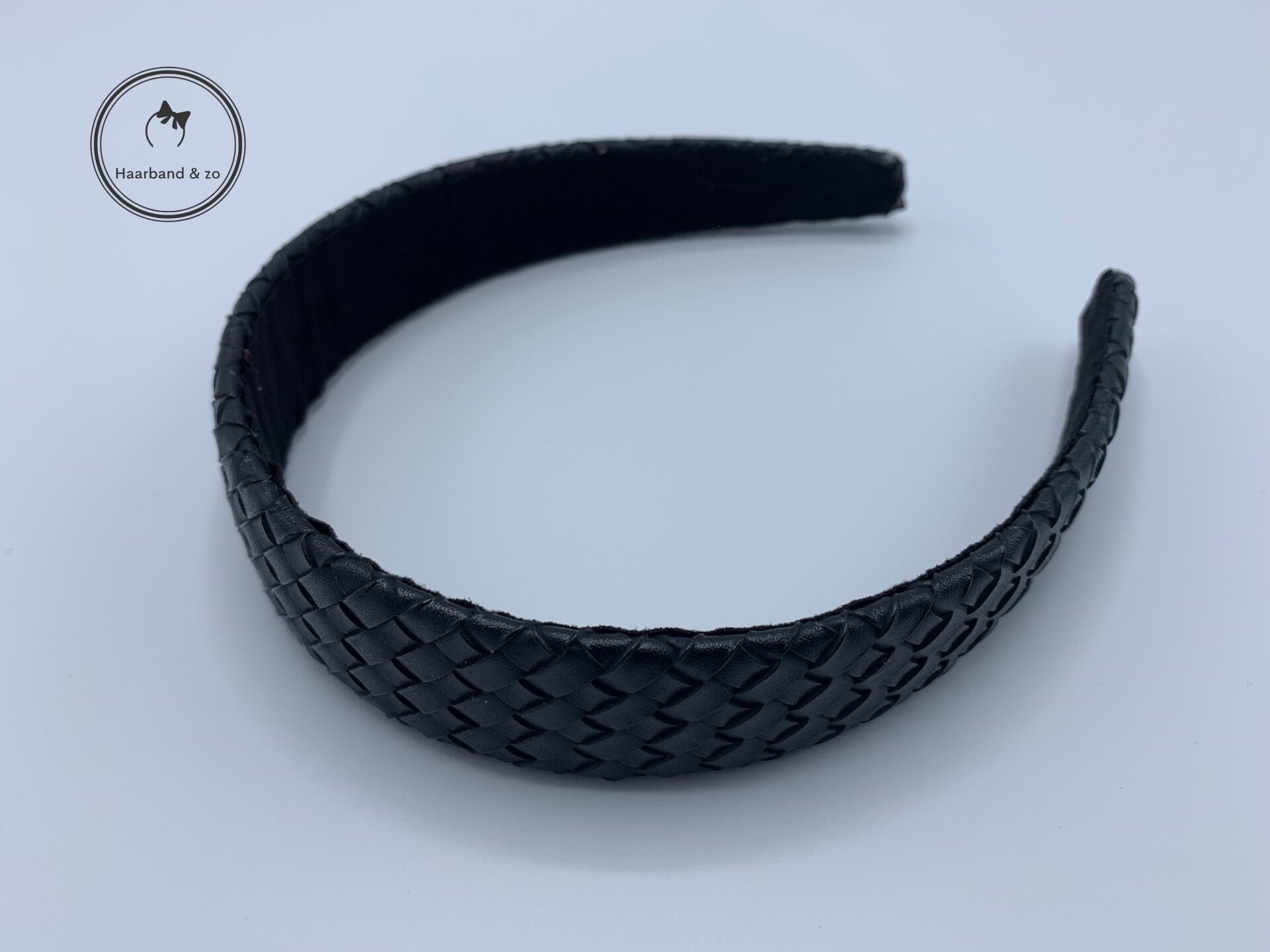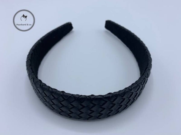 - Helemaal hip met deze prachtige haarband van gevlochten PU-leder, in de kleur zwart.