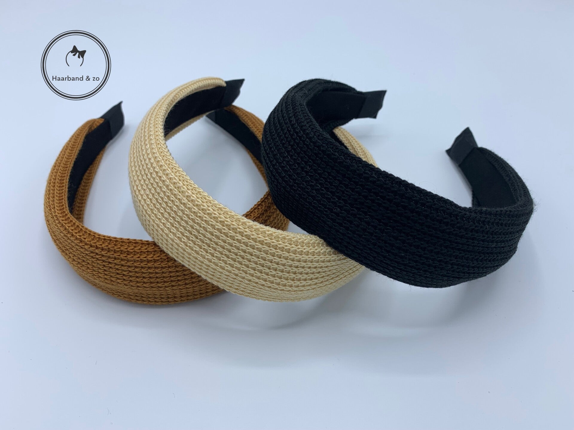 - Deze haarband is verkrijgbaar in 3 mooie kleuren, zwart, beige en roestbruin.