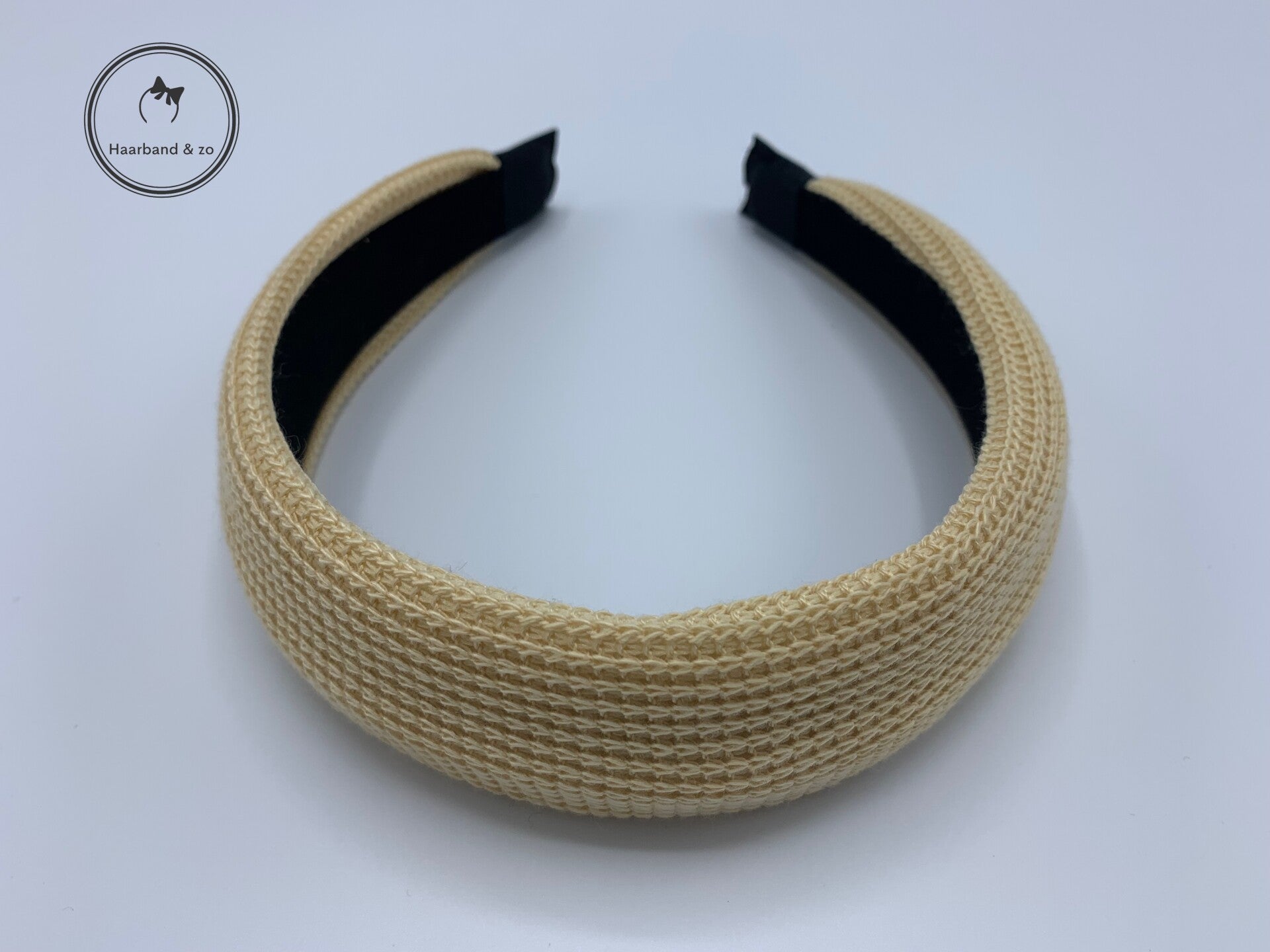 - Booghaarnband van heerlijk zacht breisel, zonder knoop of twist. In de kleur beige.
