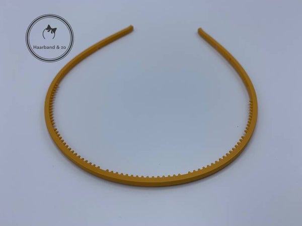 - Dunne plastic haarband met tandjes in een mat gele kleur.