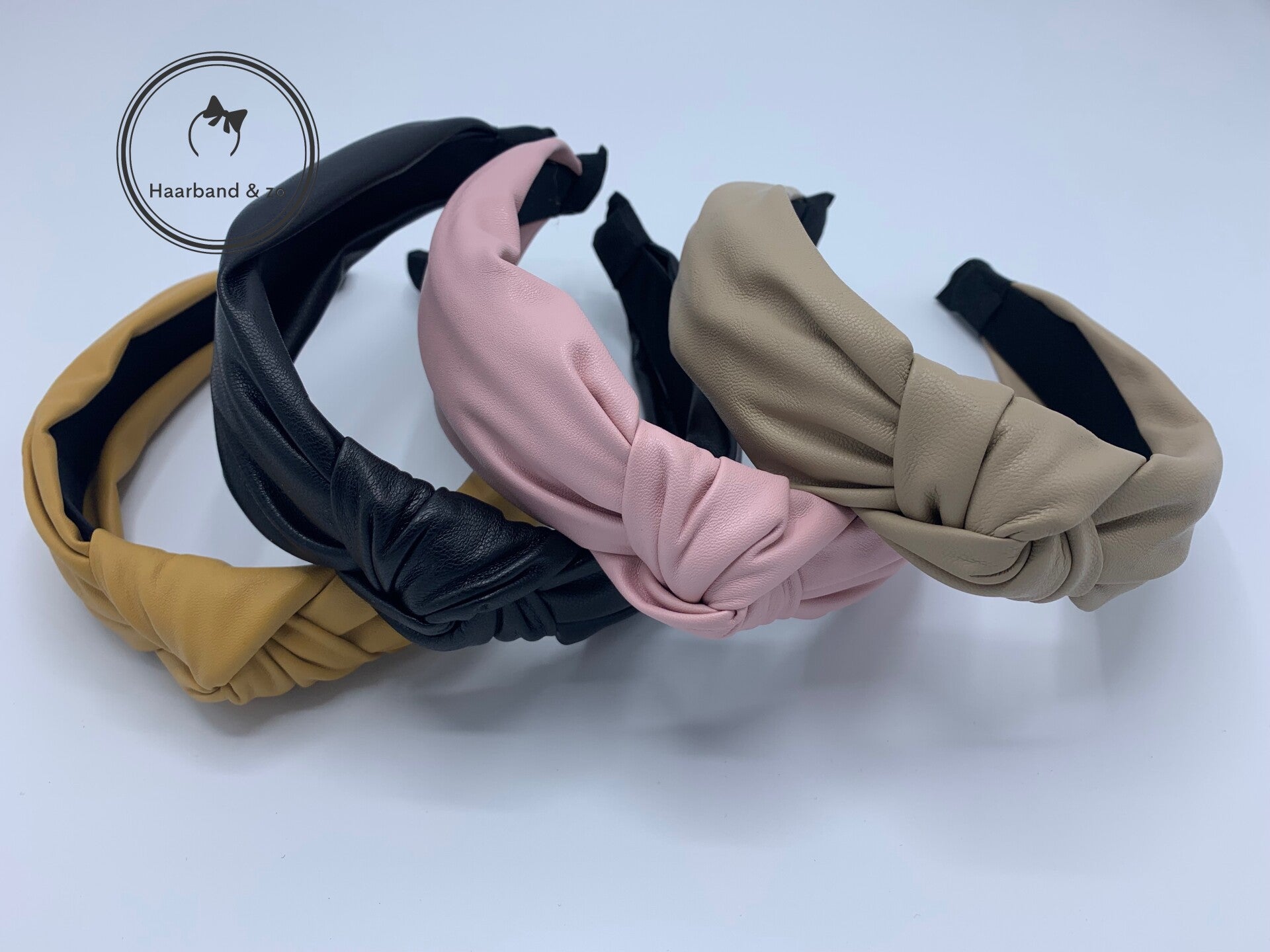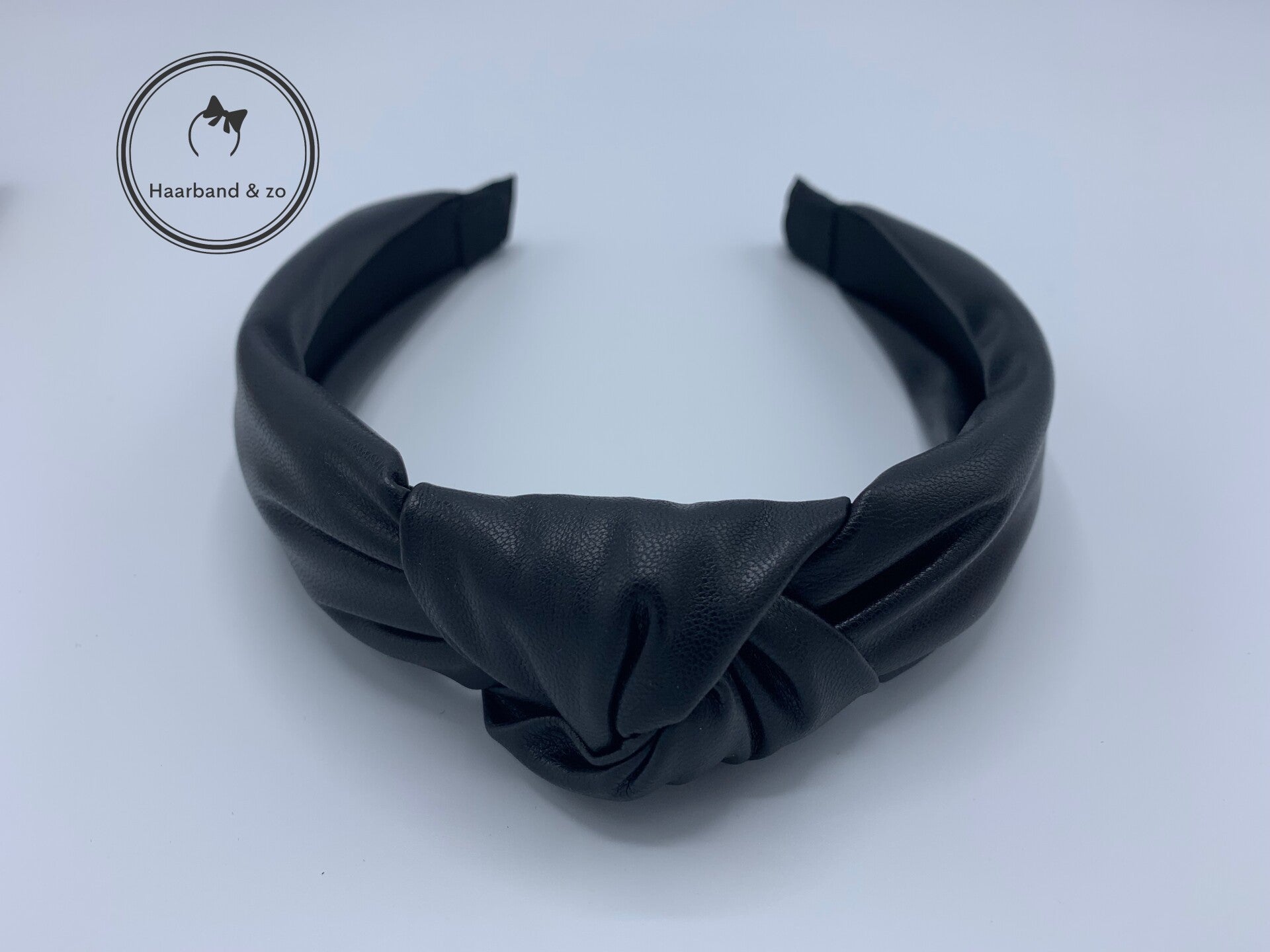 - Deze mag niet ontbreken in je collectie, booghaarband met knoop van heerlijk zacht imitatieleer, in de kleur zwart.