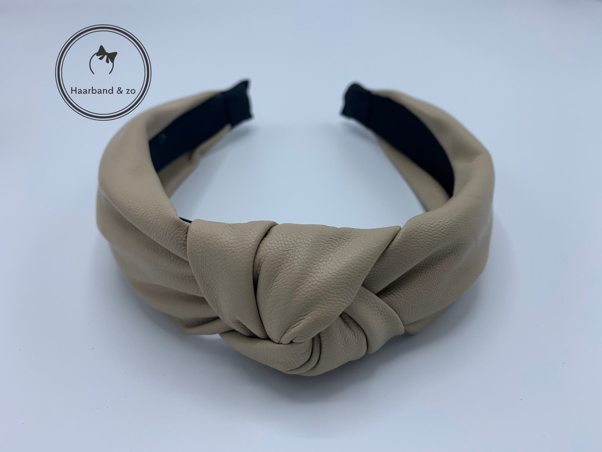 - Deze mag niet ontbreken in je collectie, booghaarband met knoop van heerlijk zacht imitatieleer, in de kleur zwart.