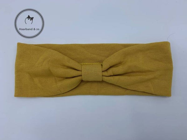 - Prachtige elastische haarband van heerlijk zacht rekbaar tricot, in de kleur okergeel.
