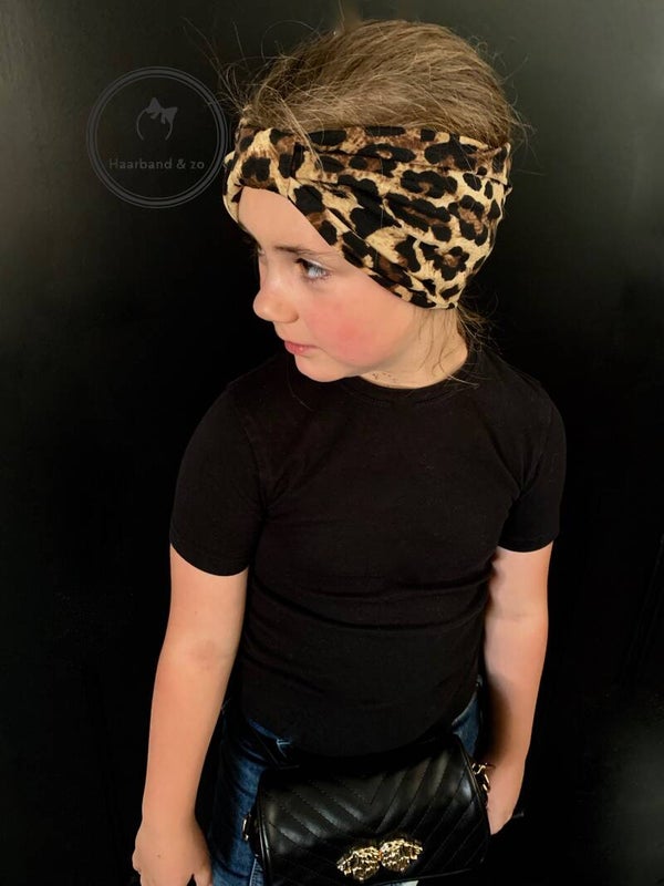 - Mooie soepele elastische haarband, van fijn tricot in luipaard print, in zwart met grijze kleur.