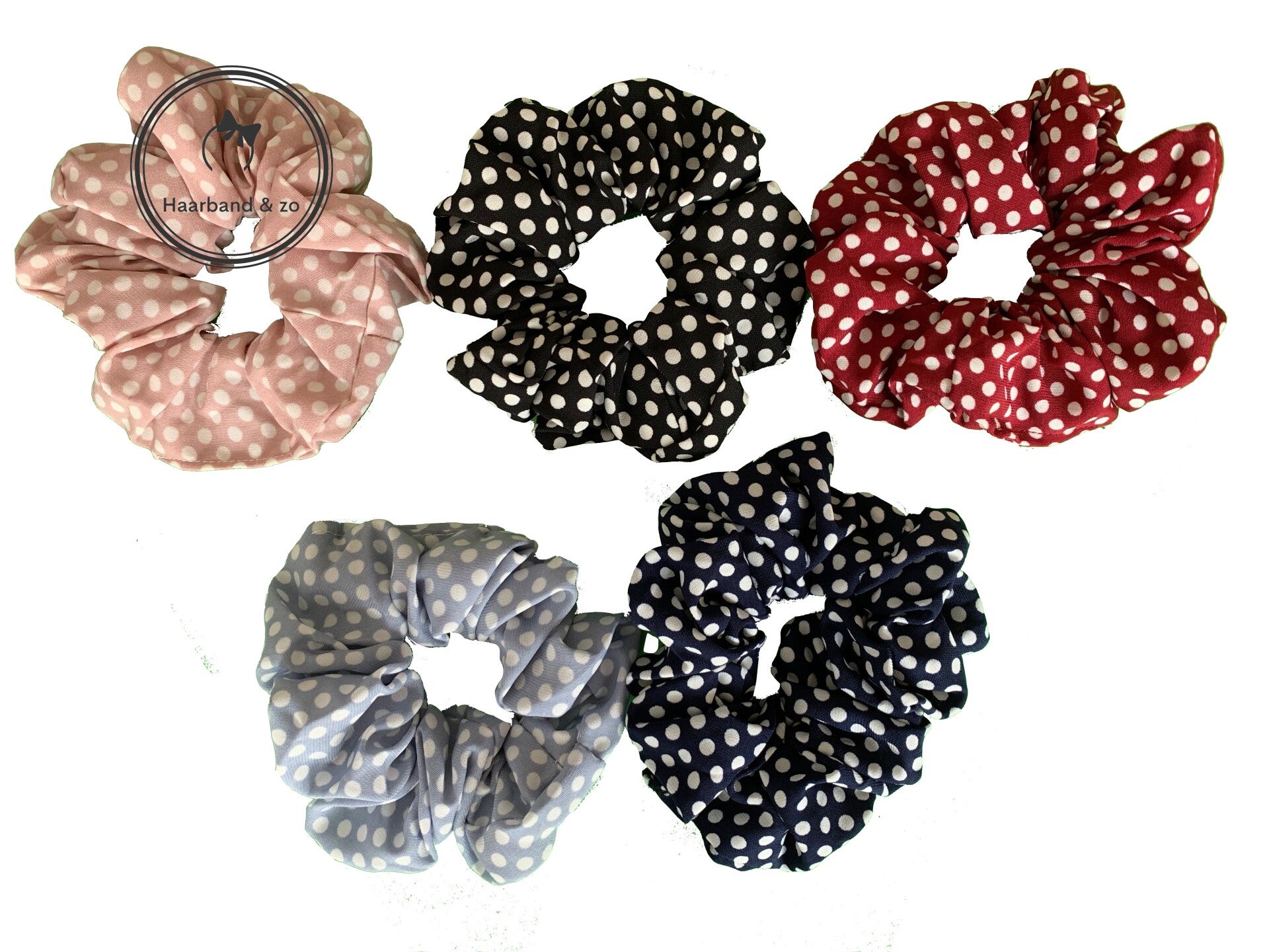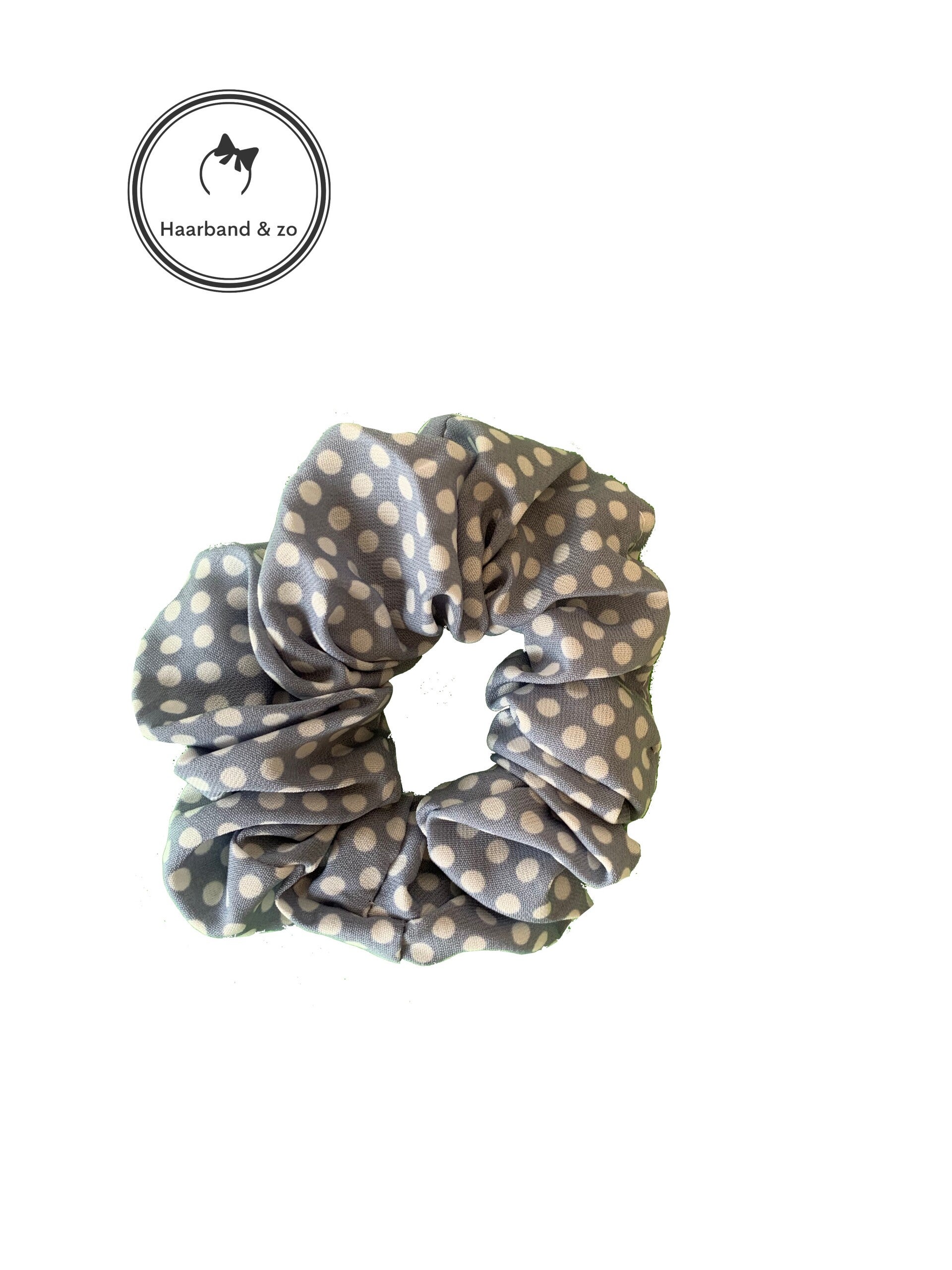 - Scrunchie (wokkel, frutsel), met stippenpatroon in de kleur lichtblauw.