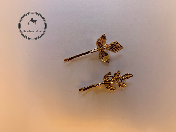 - Helemaal hip met deze schuifspeldjes met gouden blaadjes.