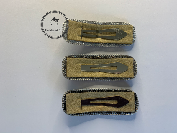 - Grote licht gebogen haarclip, met glimmende strass-steentjes in de kleur zwart met zilver. de clip is zilverkleurig maar bij het dragen niet zichtbaar.