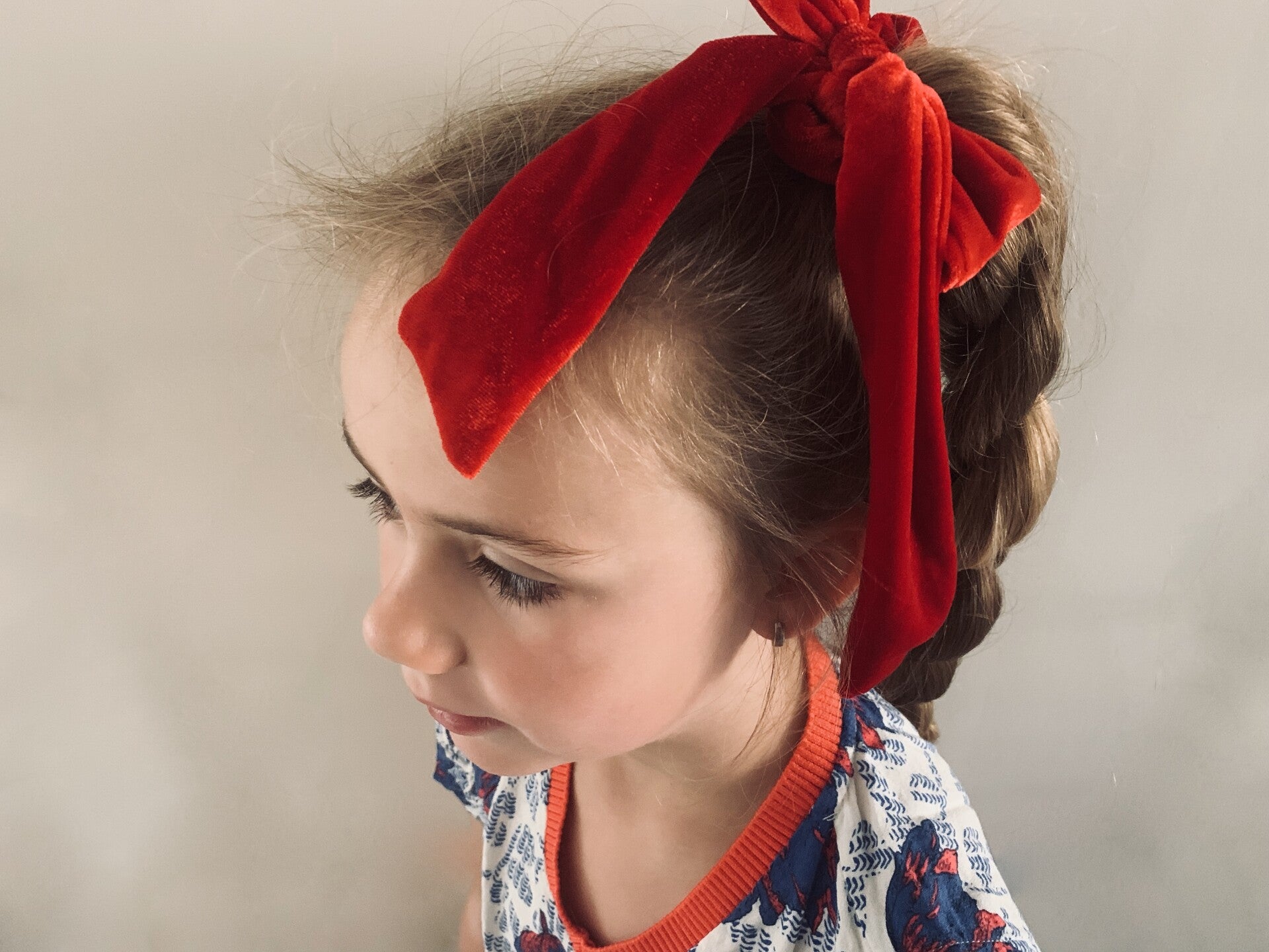 Fluwelen scrunchie met strik, helder rood (art.nr. 77-05)