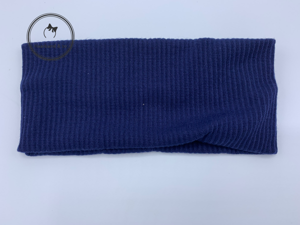 - Brede elastische haarband van ribbeltricot, zonder knoop of twist in de kleur donkerblauw.