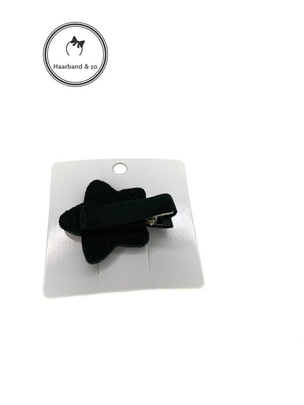 - Mini haarspeldje met rode glitterster op zwart klemmetje.