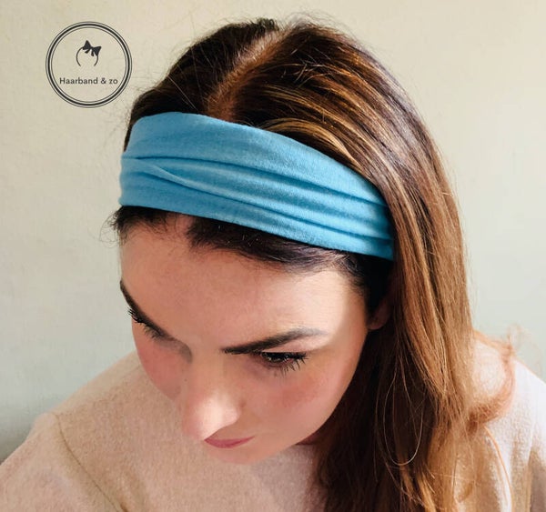 - Elastische haarband met een band van elastiek aan de achterzijde, van zacht soepel tricot, in de kleur aqua.