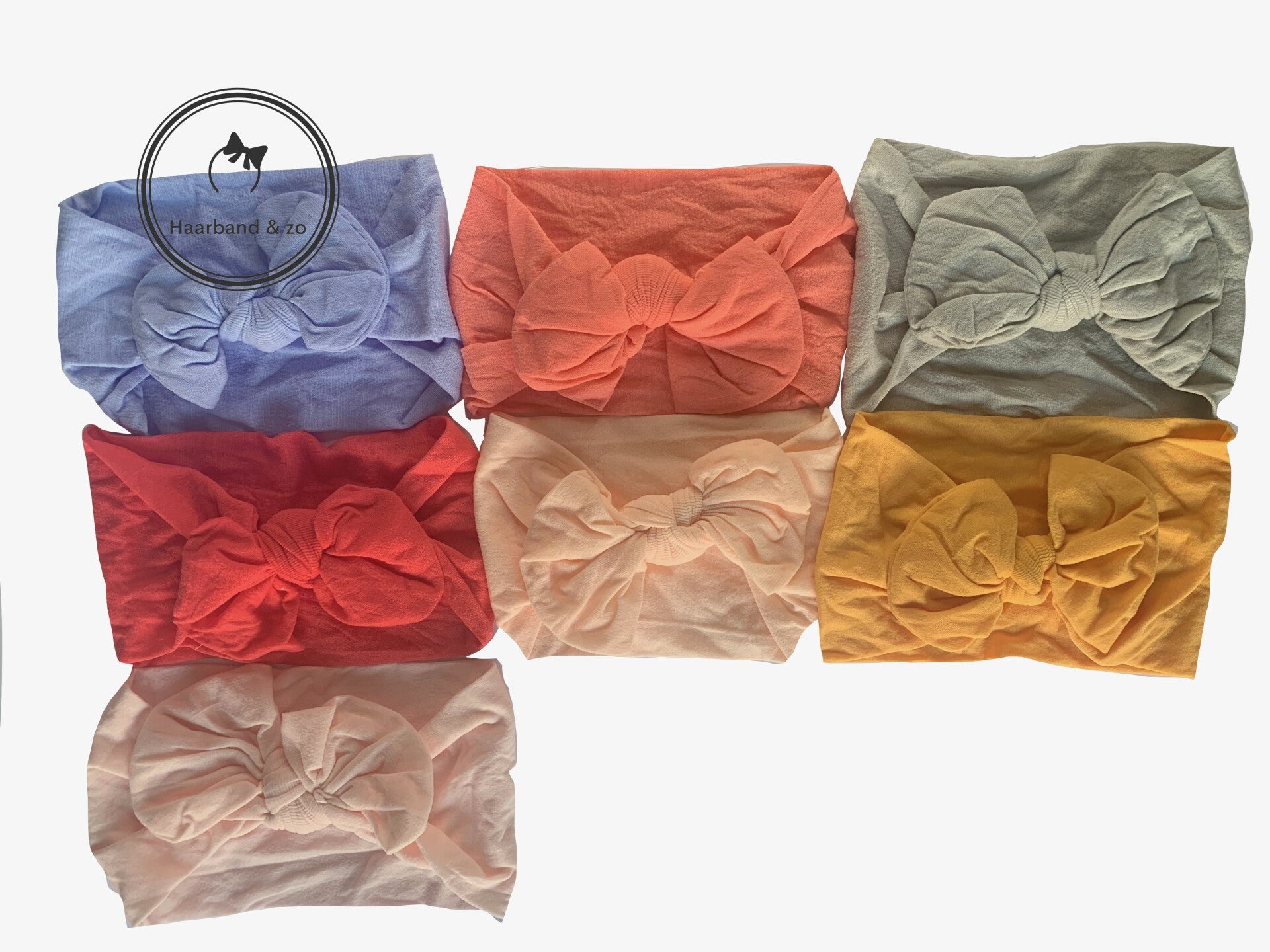 - Baby haarbandje van nylon (zoals een panty) met strik, in de kleur zalmroze.