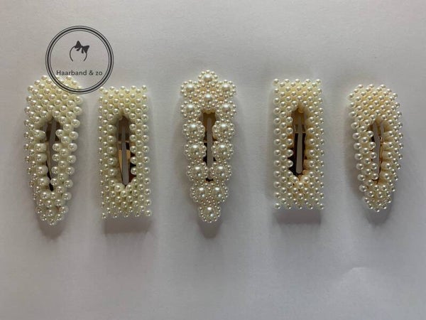 Grote licht gebogen haarclip, rechthoek, met pareltjes. (art.nr 99-02)