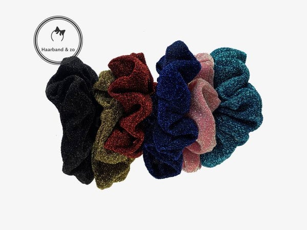 Glitter scrunchie, middelgroot, aqua. (art.nr. 106-06)