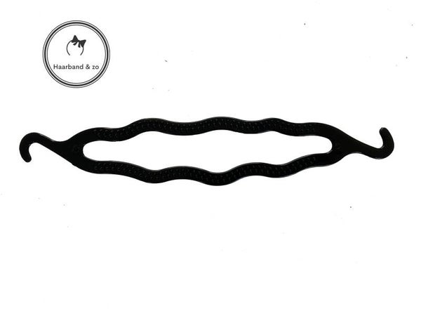 - Je maakt eerst een staart, haal je haar door de klem, schuif deze tot het uiteinde van het haar, dan rol je hem om en klem je de twee haakjes in elkaar aan de bovenkant. Super makkelijk!