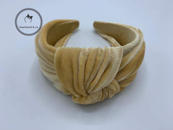 - Extra brede booghaarband van zacht, glanzend fluweel in een lichte goudgele kleur.