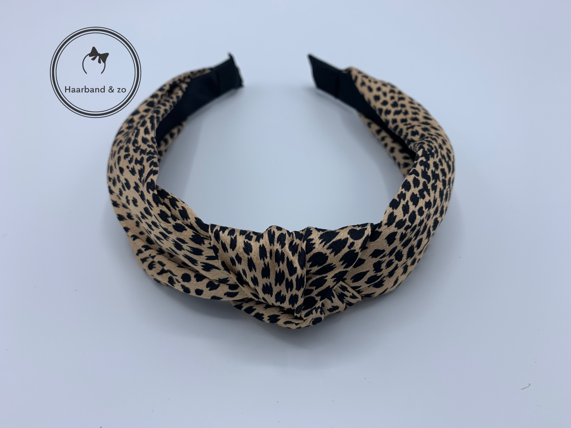 - Ter hoogte van de knoop is de haarband ruim 3 cm breed.