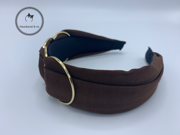 Booghaarband zonder knoop met detail van goudkleurige ringen, donkerbruin (art.nr. 244-03)