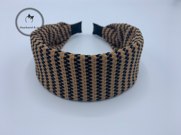 - Brede booghaarband, zonder knoop of twist in tweet-stof in de kleur khaki/zwart gestreept.