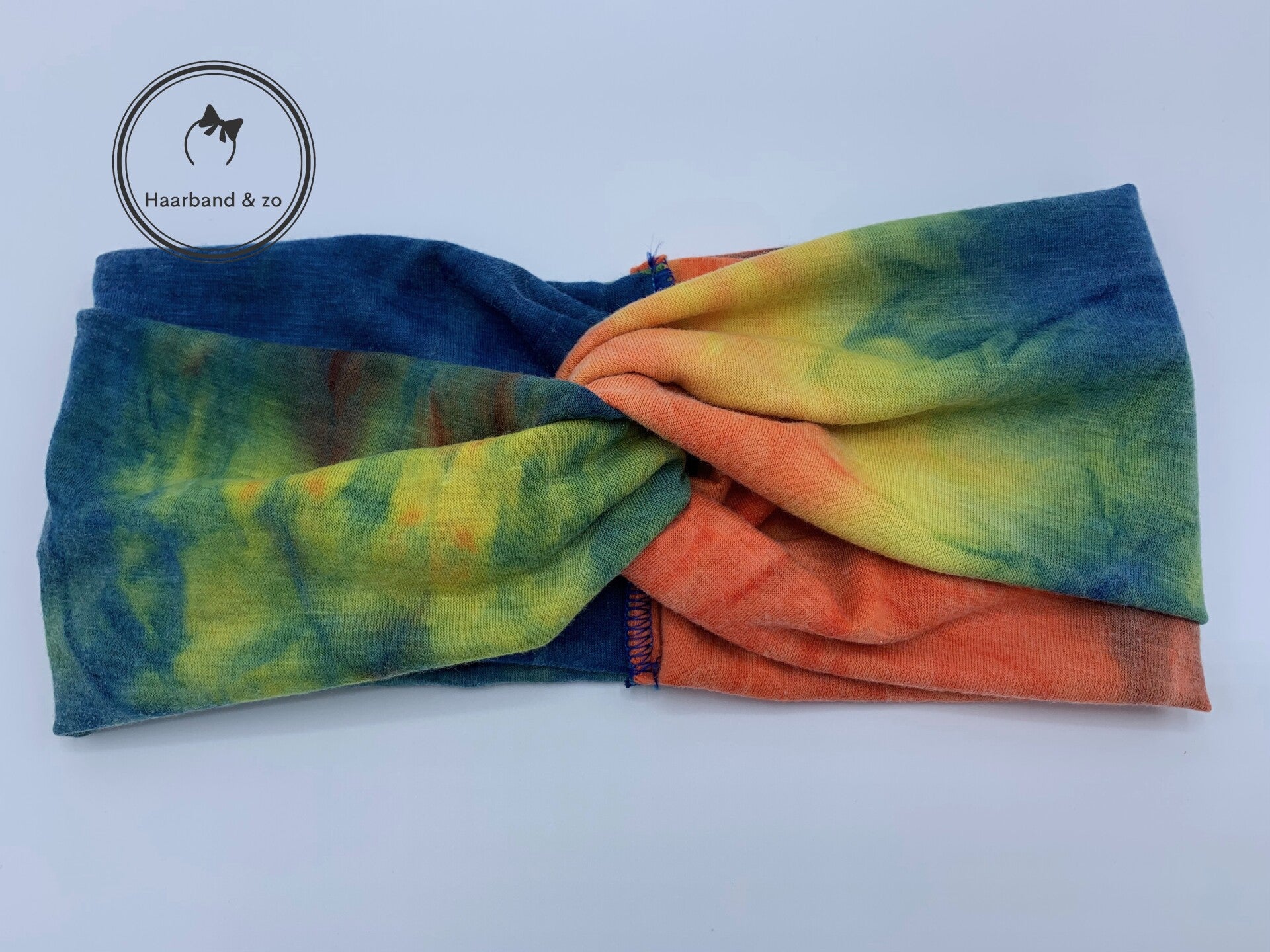 - Prachtige bodeaux rode kleur met bruin en groen, deze mooie soepele elastische haarband met twist, van fijn zacht tricot in tie dye print.