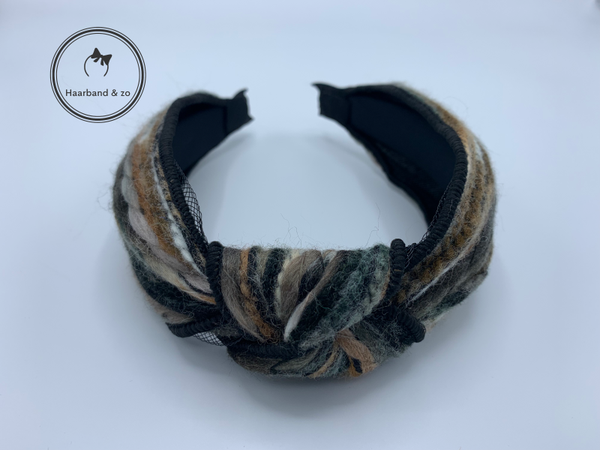 Booghaarband met knoop, van strengen wol, bruintinten (art.nr. 262-01)