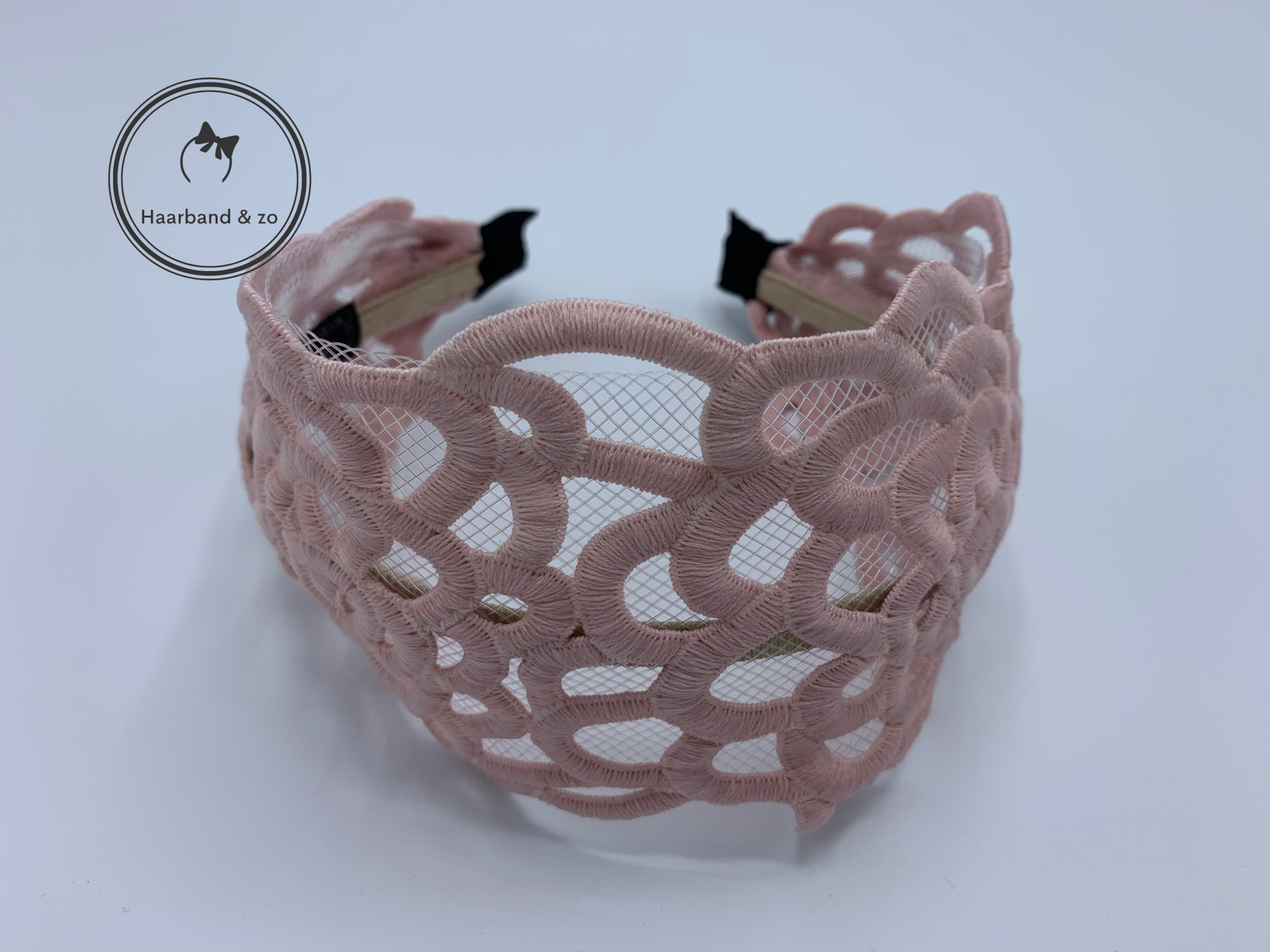 - Super brede booghaarband van verstevigd kant in de kleur roze.